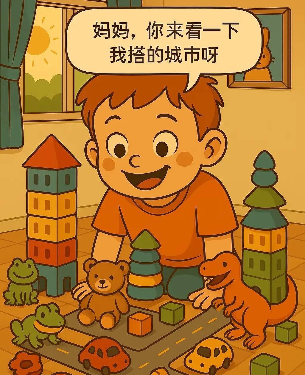 于是那天下午,我没急着恢复客厅“整洁”,而是拿来一个小篮子。“我们一起送玩具回家好不好?积木宝宝要回方方的盒子,小熊该回软软的床头啦。”他犹豫片刻,接过篮子开始运送。虽说分类不太准确,且没一会儿就跑去玩小车了,但那个下午,我首次发觉:家务不只是大人的职责范围,也能成为孩子的游戏天地。